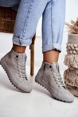Trampki Damskie Big Star Wysokie Ocieplane Szare EE274114