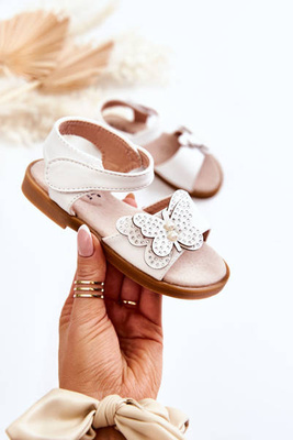Dziecięce Skórzane Sandały Motylki Białe Rolly