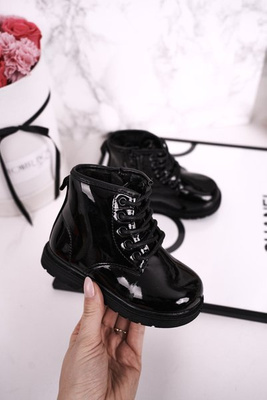 Dziecięce Botki Ocieplane Glany Lakierowane Czarne Ammy