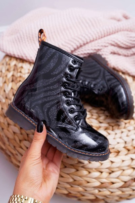 Dziecięce Botki Lakierowane z Suwakiem Czarne Omua