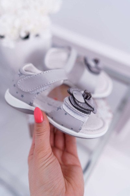 Dziecięce Młodzieżowe Chłopięce Sandały Na Rzepy Szare Reksio