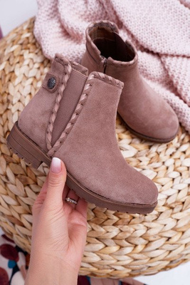Młodzieżowe Botki Płaski Obcas Camel Sicarro