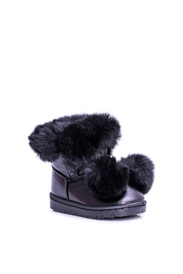 Czarne Ocieplane Dziecięce Młodzieżowe Botki Śniegowce Roofy