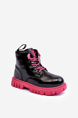 Ocieplane Lakierowane Botki Dziecięce Big Star MM374148 Czarno-Różowe