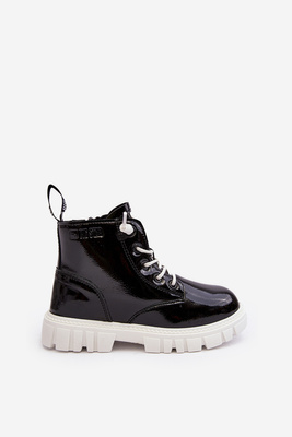 Dziecięce Lakierowane Ocieplane Botki Czarne Porky