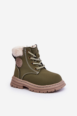 Dziecięce Botki Trapery Ocieplane Wełną Khaki Marco