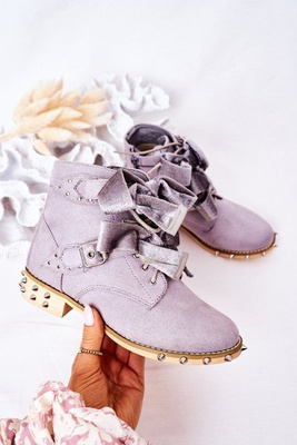Dziecięce Ocieplane Botki z Ćwiekami Srebrne Gonzo