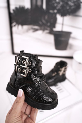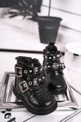 Dziecięce Botki Ocieplane Glany Czarne Ammy