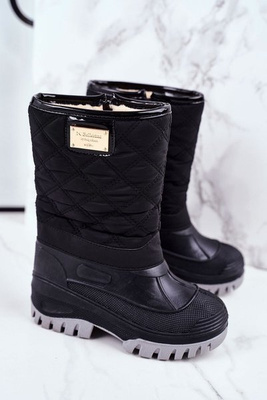 Dziecięce Ocieplane Botki Śniegowce Z Futerkiem Czarne Nicola
