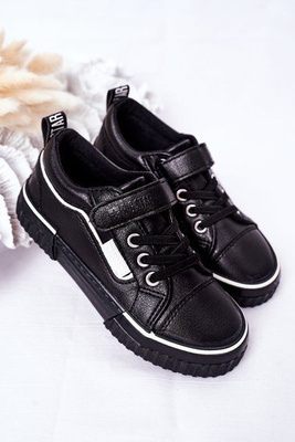 Dziecięce Skórzane Trampki Na Rzep BIG STAR HH374029 Czarne