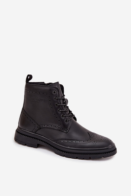 Skórzane Ocieplane Botki Męskie Na Zamek Big Star OO174148 Czarne