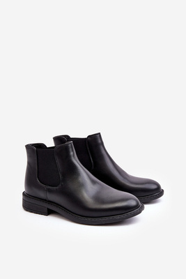 Skórzane Botki Męskie Ocieplane Czarne Komodo 733