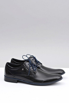 Czarne Skórzane Eleganckie Półbuty Massimiliano