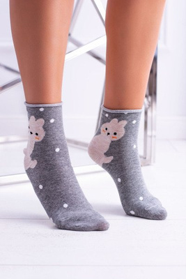 Damskie Skarpetki Świąteczne Antypoślizgowe Szare Z Reniferem