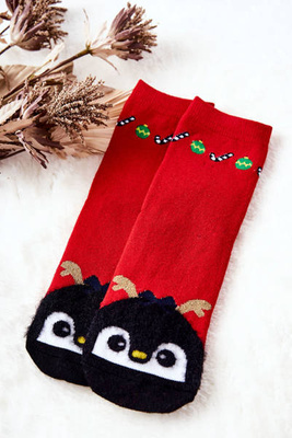 Skarpetki Dziecięce Błyszczące Pingwin Czerwone