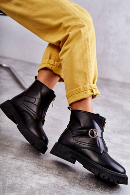 Skórzane Ocieplane Botki Na Suwak Czarne Verina