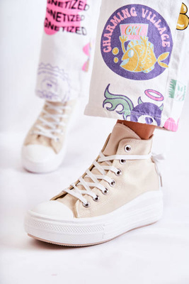 Damskie Wysokie Trampki Wiązane Beżowe Carlyn