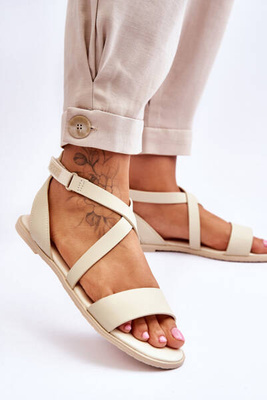 Skórzane Sandały Za Kostkę Big Star LL274A161 Beżowe