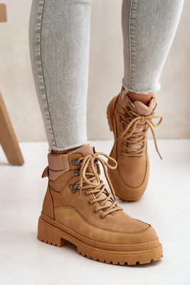 Botki Trapery Damskie Sznurowane Camel Rabaria
