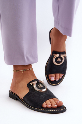 Eleganckie Błyszczące Klapki Damskie Z Ozdobą S.Barski KV27-032 Czarne
