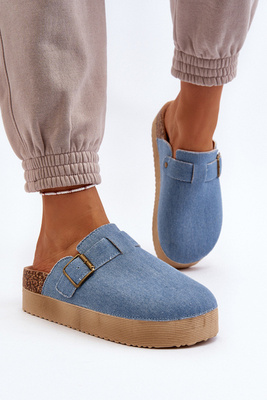 Klapki Jeansowe Damskie Chodaki Na Platformie Niebieskie Jorffia