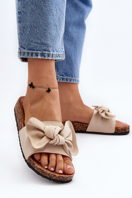 Damskie Klapki Na Korkowej Platformie Z Kokardą Beżowe Tarena