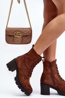 Zazoo 3414 Damskie Ażurowe Botki Na Słupku Zamszowe Brązowe