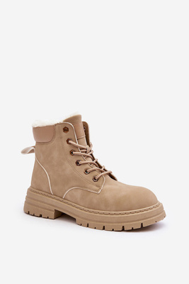 Ocieplane Buty Sportowe Damskie Sznurowane Beżowe Dejana