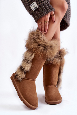 Damskie Botki Śniegowce Ocieplane Zamszowe Camel Balvin
