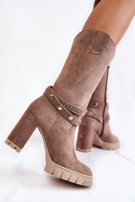 Damskie Kozaki Na Słupku Lewski Shoes 3246 Cappucino
