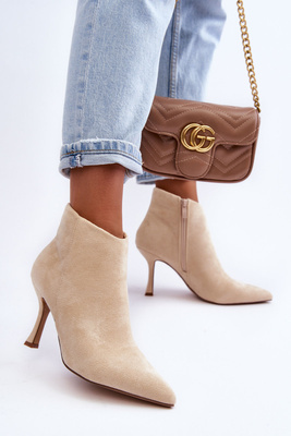 Damskie Zamszowe Botki Na Szpilce Jasnobeżowe Merisa