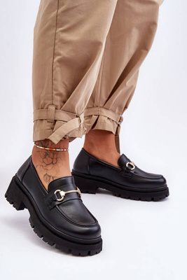 Damskie Klasyczne Mokasyny Na Platformie Czarne Miracle