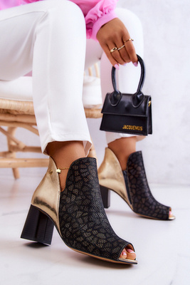 Skórzane Botki Na Słupku Maciejka 05507-01 Czarno-Złote