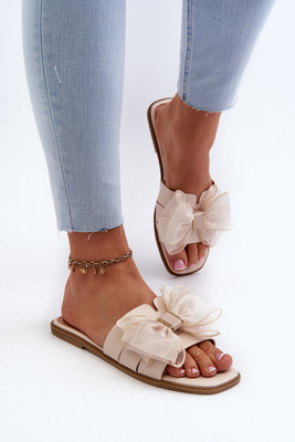 Płaskie Klapki Damskie Z Kokardą Beżowe Balinda