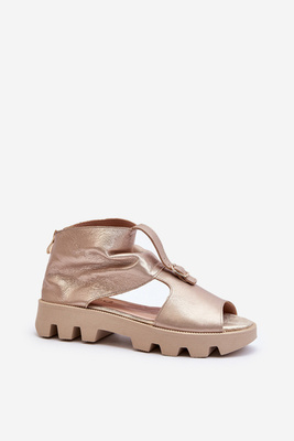 Zazoo 999 Skórzane Sandały Damskie Z Zamkiem Złote