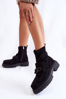 Zamszowe Damskie Botki Na Platformie Czarne Lemar Martine