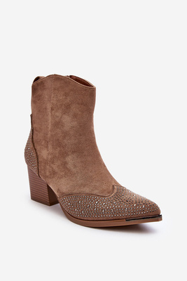 Damskie Kowbojki Botki Na Słupku Ciemnobeżowe Danell