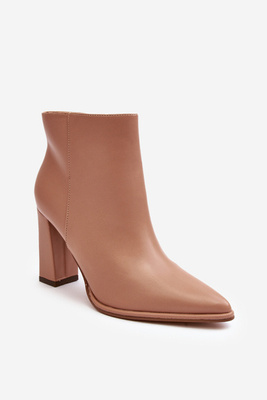 Skórzane Botki Damskie Na Słupku Beżowe Saitana
