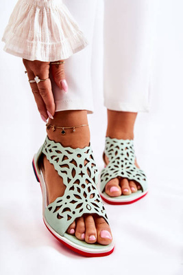 Skórzane Lekkie Ażurowe Sandały Zielone Alima