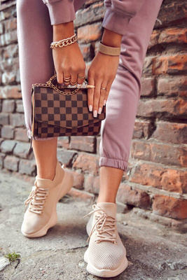 Damskie Sportowe Buty Sneakersy Materiałowe Jasnobeżowe Storia