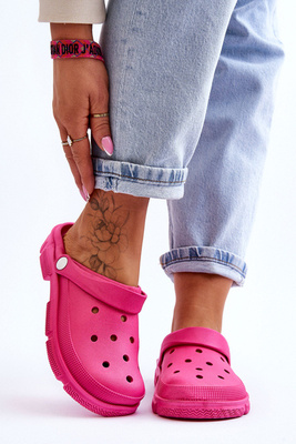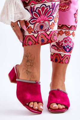 Zamszowe Klapki Na Obcasie S.Barski KV-612-2 Fuksja