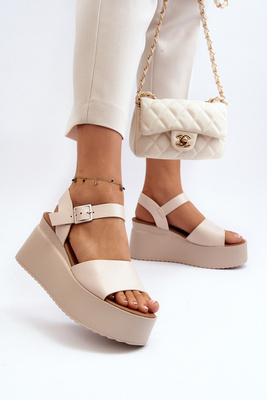 Damskie Klapki Na Korkowej Platformie Z Kokardą Beżowe Tarena