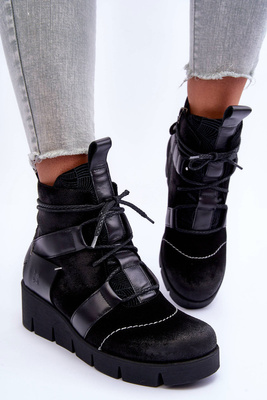 Skórzane Botki Na Koturnie Maciejka 06185-01 Czarne