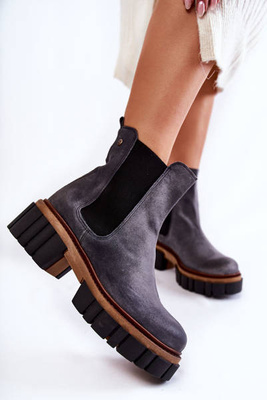 Skórzane Botki Workery Maciejka Szare 05312-03