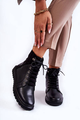 Skórzane Ocieplane Botki Glany Big Star KK274486 Czarne