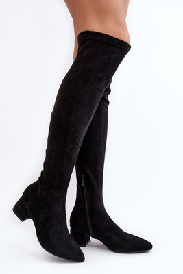 Zamszowe Damskie Kozaki Przed Kolano Lemar Czarne Malayah
