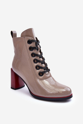 Lakierowane Sznurowane Botki Na Słupku S.Barski MR870-15 Ciemnobeżowe