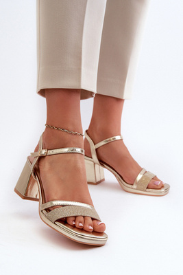 Sandały Damskie Na Obcasie Z Eko Skóry Złote Horissa