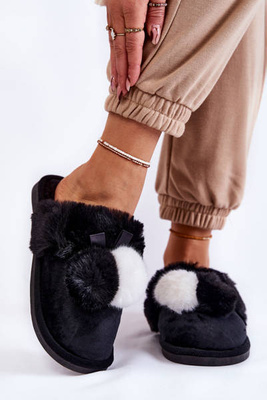 Damskie Papcie Z Pomponami I Futerkiem Czarne Sahira
