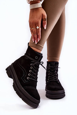 Zamszowe Ocieplane Botki Workery Na Płaskim Obcasie Czarne Salome